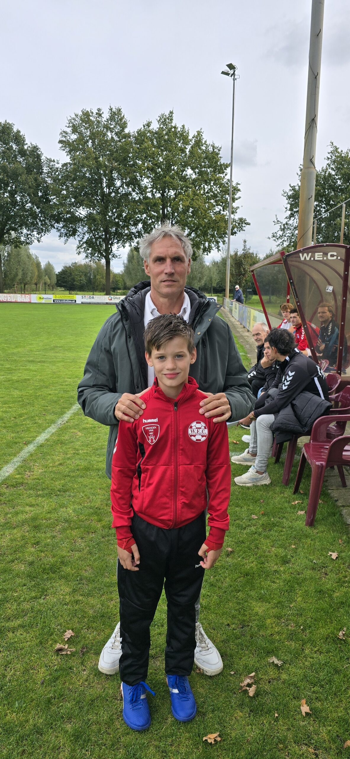 Zondag moest ik om 13.15 uur bij WEC zijn. Ik mocht eerst met mama naar de bestuurskamer. Daar kreeg ik wat drinken. Toen mocht ik mee de kleedkamer in. Daar werd muziek gedraaid en ik kreeg van iedereen een hand.